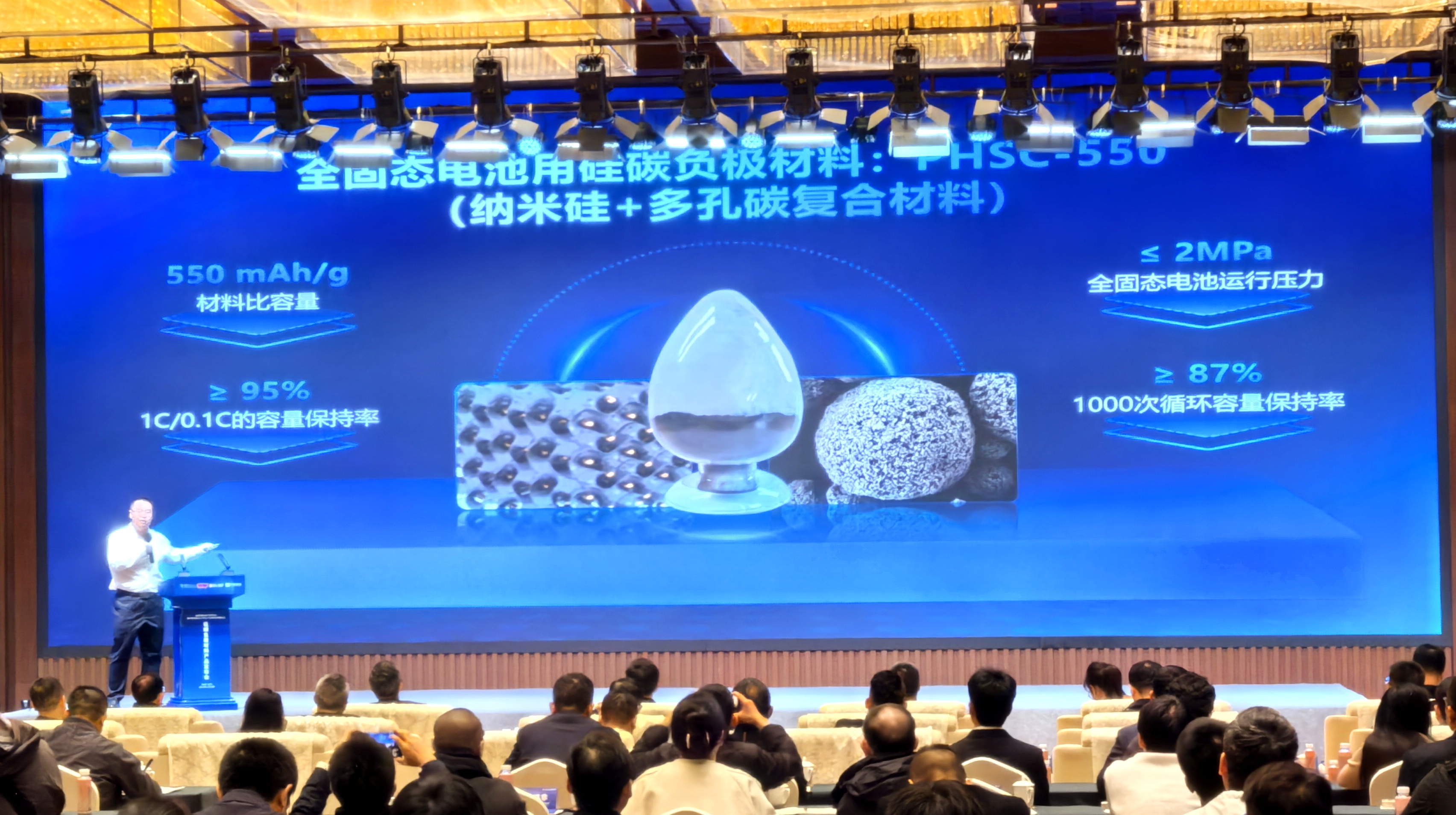 11月10日下午,作为“2025年世界动力电池大会”系列重要活动之一,普什集团&华宜清创硅碳负极材料产品发布会暨欧阳明高院士工作站青年人才公益基金捐赠仪式在四川省宜宾市举行。仪式上,四川华宜清创新材料科技有限公司(简称“华宜清创”)董事长杨敏发布了三款全固态电池用硅碳负极材料产品,其销售价格仅为市面上相同规格型号产品的40%至55%。这意味着,一款在成本、能耗上具备“绝对优势”的固态电池关键材料在宜宾诞生。