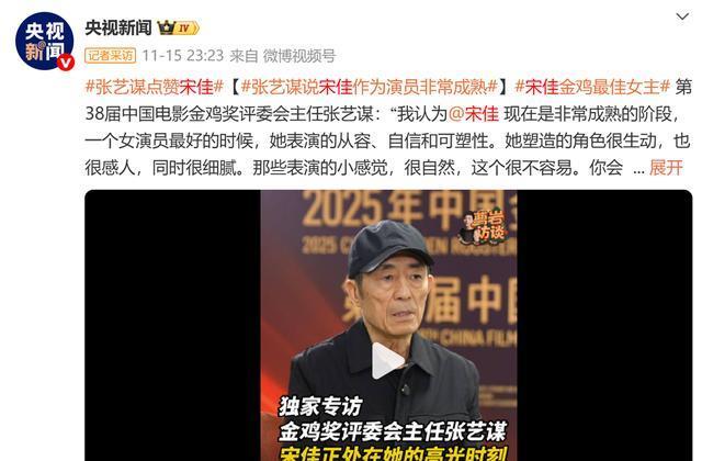 与此同时,央视新闻也相继转发张艺谋对宋佳的评价——“她现在是女演员最成熟的阶段,表演从容自信,小感觉拿捏得很自然。”