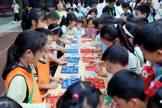 数学节当天,校园化身为一个充满奇思妙想的“数学游乐场”。学校为不同年级的学生量身定制了22个趣味项目:三年级“摸盲盒猜图形”,在未知中激发空间想象;四年级“数学五子棋”,在博弈中锻炼逻辑思维;五年级“黑白棋挑战”,考验策略与推演;六年级“解锁九连环”,则在耐心与智慧中感受传统数学玩具的魅力。